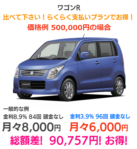 地域最低金利にチャレンジしており新車ご購入金利は0%~最長60回(当社限定プランにより当社が金利をご負担します)と